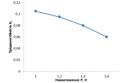 рисунку 1 видно, що при збільшенні навантаження тріщиностійкість зменшується, а