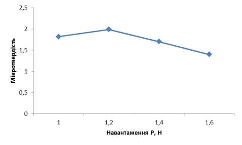 мікротвердість починає збільшуватися до навантаження 1,2 Н, після чого