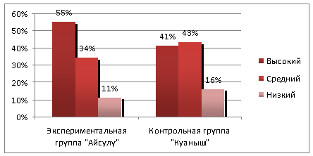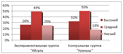 результатами констатирующего эксперимента, в экспериментальной группе «Айсулу»,