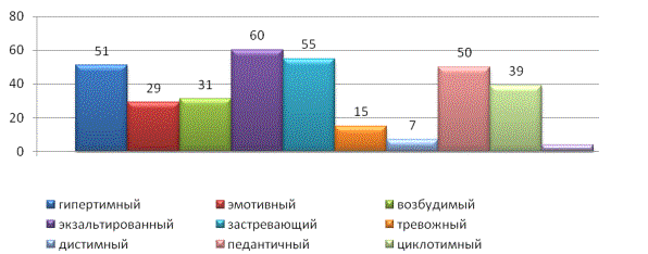 акцентуации выражен у 51 % женщин. Эти женщины чаще пребывают в приподнятом