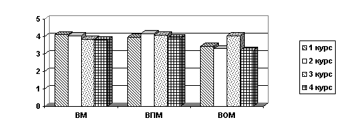 ВМ>ВПМ>ВОМ, на 2 курсе: 4,03<4,15>3,30, или ВМ <ВПМ >ВОМ, на