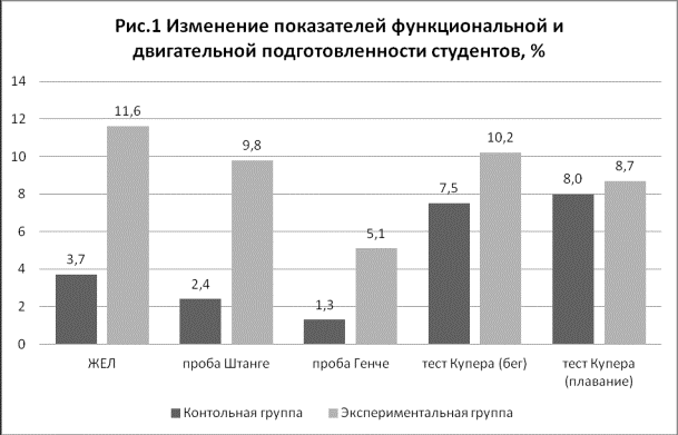 группой соответственно, (%): ЖЕЛ на 11,6 и 3,7; проба Штанге на 9,8 и 2,4;