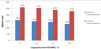 Рисунок 1 – Сроки схватывания композиционных вяжущих на основе КОММ