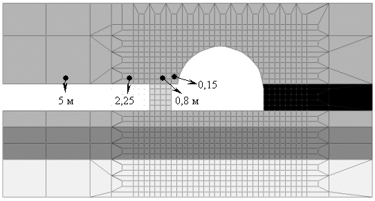 от выработки и выбранные элементы для исследований обозначены на рисунке 1.