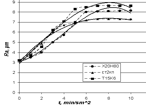 duration of treatment. To determine the nature of roughness Ra change and the thickness δ of the coating layer were applied to samples with the