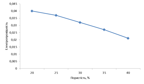 збільшенням пористості, електропровідність зменшується. Це пов'язано з з тим,
