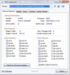 установленных в системе читающих и пишущих приводах. VSO Inspector показывает,
