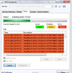 помощью программы VSO Inspector тестируют диски, результаты выводятся на экран монитора, в процессе работы