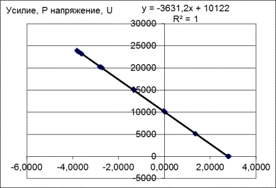 связывающий значения усилии на датчике с величиной выходного напряжения U, отображаемой на дисплее компьютера: