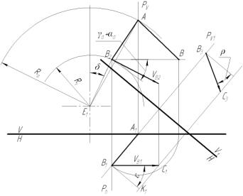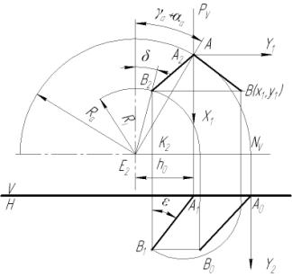 положенні зображаємо у натуральну величину різальну кромку АВ. Зворотним