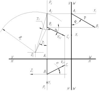 (рис. 3) зображаємо в системі V/H положення передньої площини Р, яке