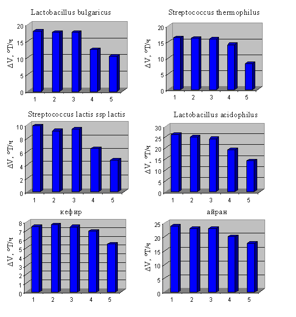 контрольных в среднем на 40 – 50% для всех видов заквасочных культур, кроме
