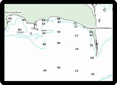километров вглубь моря от прибрежной зоны Апшеронского полуострова. Водные образцы отбирались с помощью
