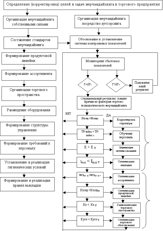 Для организации управления торгово – технологическими процессами на предприятиях розничной торговли на основе мерчандайзинга автором предлагается использовать алгоритм, приведенный на рис 1.