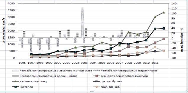Рис.2. Середні ціни реалізації