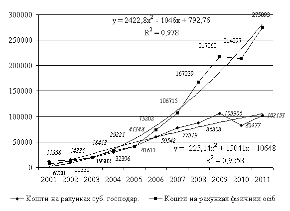 Протягом 2008-2011 років кошти на рахунках фізичних осіб продовжили