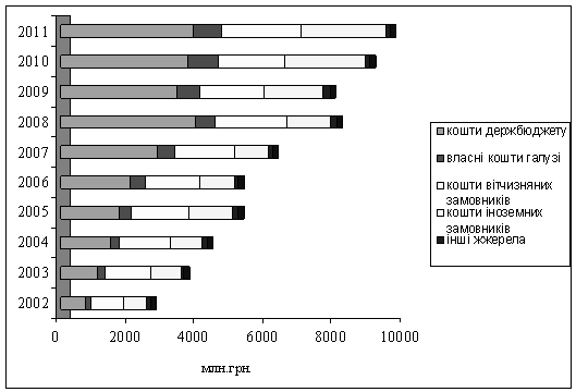 кошти галузі; кошти замовників (вітчизняних та іноземних); інші джерела, не