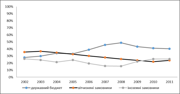 обсягу фінансування складали кошти вітчизняних замовників, то у 2011 р. це