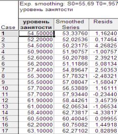Экспоненциальное сглаживание ряда уровня занятости с параметрами Alpha = 0,6, Gamma = 0,4.