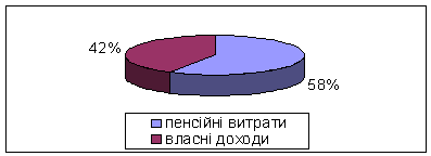 Рис. 1 Співвідношення пенсійних витрат та власних надходжень Пенсійного