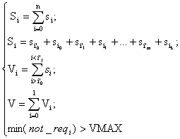 VMAXz_min. Як наведено вище, параметр VMAXz_min визначений з простору всіх вільних послідовностей Vi кожного стану z для певної конфігурації Si. Окрему вільну послідовність Vi утворюють вільні блоки si в динамічній пам’яті (вираз 4). З аналізу цього виразу зрозуміло, що