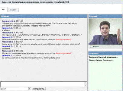 режиме он-лайн) взаимодействия с преподавателем в форме видео чата (рисунок 5).
