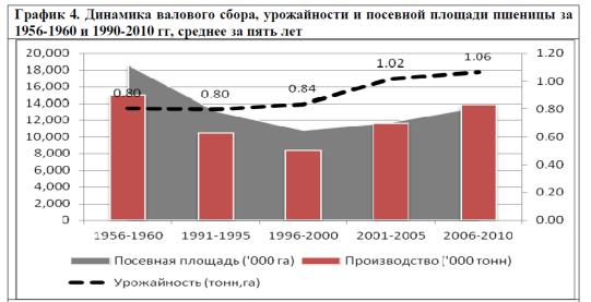 4,75 млн. тонн. Начиная с 2000 года, посевная площадь пшеницы росла практически
