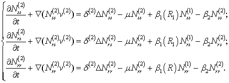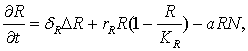 – мальтузианский коэффициент прироста. Уравнение динамики плотности биомассы: