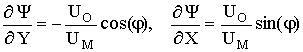 Fig. 4. Structure of flow current (lines of a stream) Uo = 1; g = 9,8