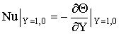 local Nusselt numbers on top (Y=1) and bottom (Y=0) border of calculated area
