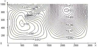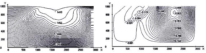 border of calculated area that will be agreed with known experimental data. On fig. 3 the results for velocity of movement oceanic plate U0 = 5 ñm/year are given. The depth of