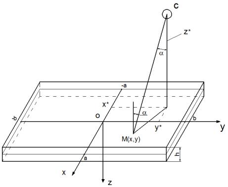 , начало координат – в центре симметрии пластины, ось