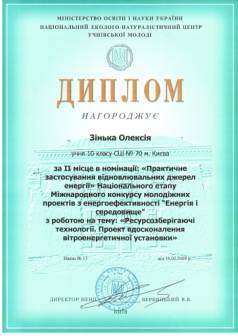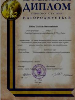 Міжнародному конкурсі молодіжних інновацій і розробок «Новий Час» в конкурсі «Молодий винахідник» в