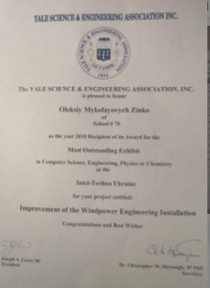 корпорації Інтел один з виконавців проекту отримав нагороду Єльського