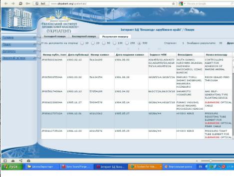 Результати пошуку іноземних патентів, виконаного