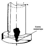 впрыскивается в камеру сгорания через круглое сопло, расположенное в центре