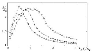 Рис.3. Зависимость теплоемкости от величины при значениях параметра