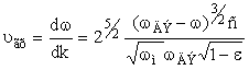 получим значения волнового числа k` и фазовой скорости ω/ k (υф~108