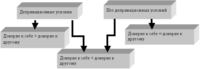 показал, что в депривационных условиях выражено доверие к другому, тогда как у