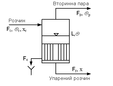 процесу випарювання представлена у вигляді рівнянь динаміки процесу: