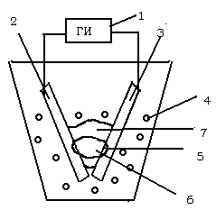 Импульсное напряжение от генератора 1 поступает на электроды 2 и 3. При