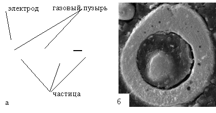 расплавленный металл (рис. 2, а). Если размеры частицы велики, то под