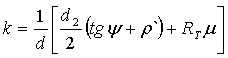 Приведенный к диаметру резьбы, коэффициент трения к, входящий в формулу