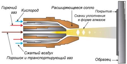 при нанесении до сверхзвуковых скоростей. В ходе этого процесса горючий газ и