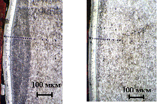 На рис.1 представлены микроструктуры стали 40Х после металлизации в зоне лазерного
