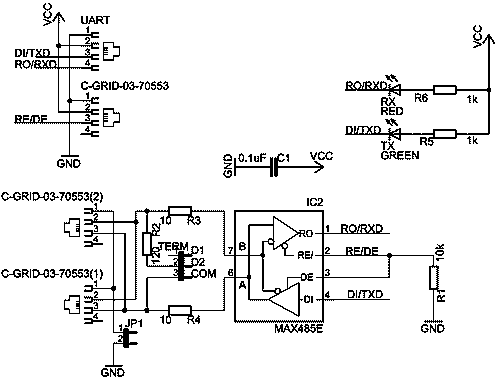 кількість вузлів до 128. Перемикач JP1 дозволяє підключити загальний провід, що