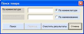 opens. In this form it is possible to execute such operations as: goods search,