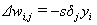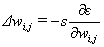 Для модификации весового коэффициента используется стохастический градиентный спуск, то есть значения весов изменяются после каждой строки обучающей выборки в сторону, противоположную градиенту