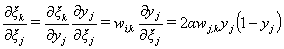 стороны, значения весов скрытых слоев зависят от весов, идущих к выходному
