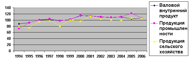 года идет медленный подъем производства промышленной продукции. Например в 2000